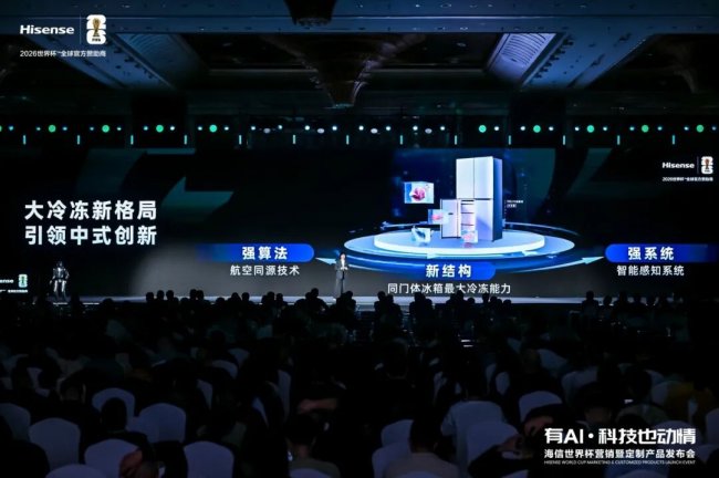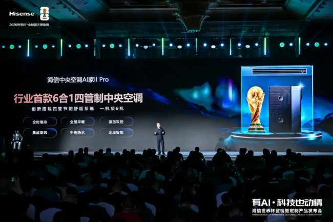 3月5日,2026美加墨世界杯倒计时3个月之际,海信世界杯营销暨定制产品发布会在青岛举办。海信家电(SZ 000921,HK 00921)冰箱、空调、洗衣机、厨电等新品同步亮相,多款世界杯定制产品首发登场。